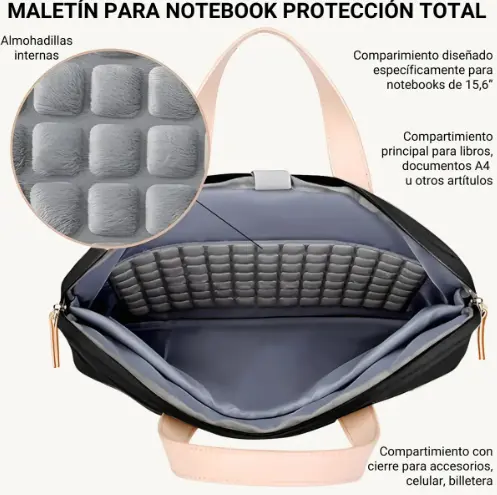 Protección de alto nivel para tu herramienta de trabajo. Este maletín ultra resistente combina la elegancia de la tela Oxford con un compartimento interno acolchado con tecnología de cojín de aire. Ideal para profesionales y estudiantes que buscan seguridad, organización y comodidad en sus traslados diarios.